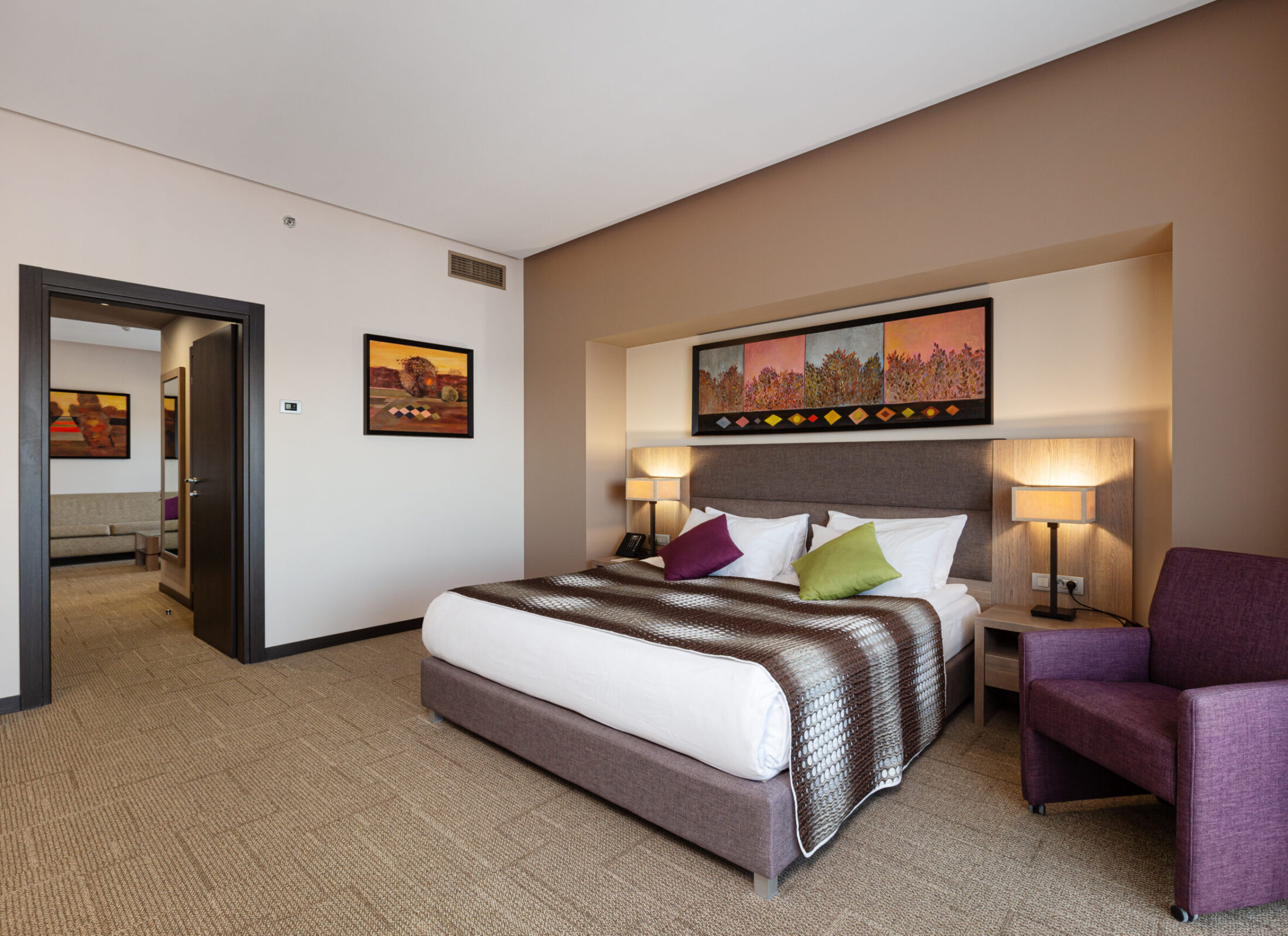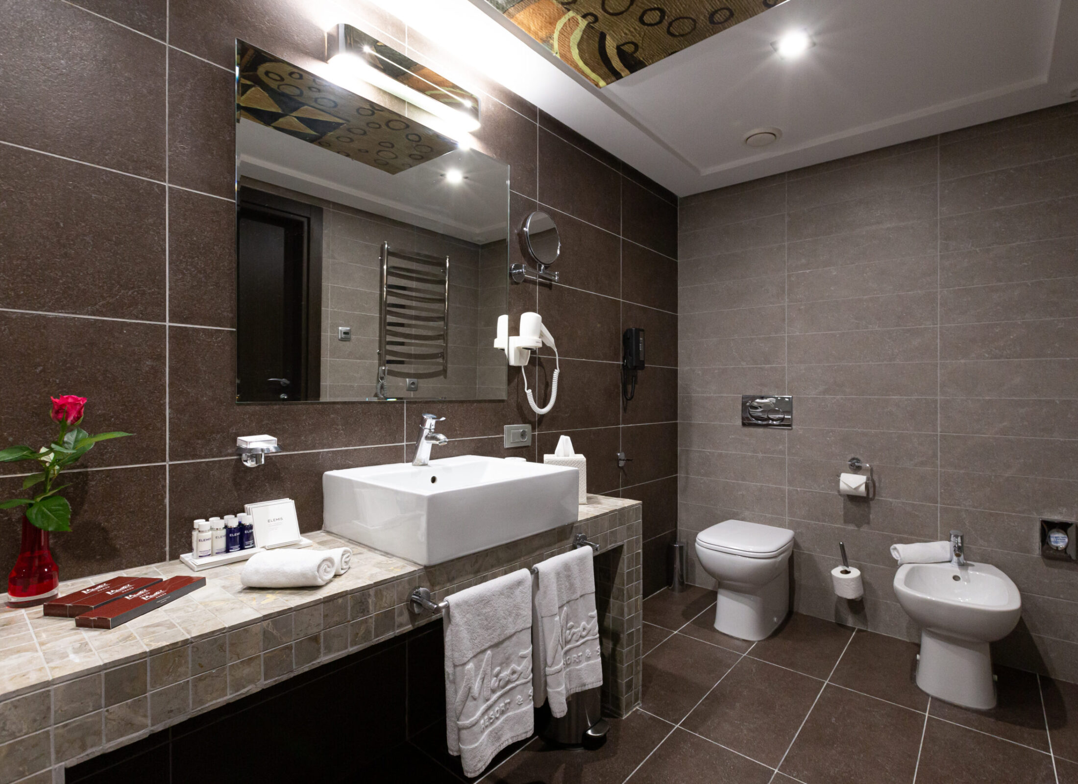 Якщо бажаєте ще кращих умов, можете обрати для відпочинку номер класу Люкс Прем’єр. Це покращений номер Люкс площею до 103м2. У ньому цілих дві ванних кімнати.