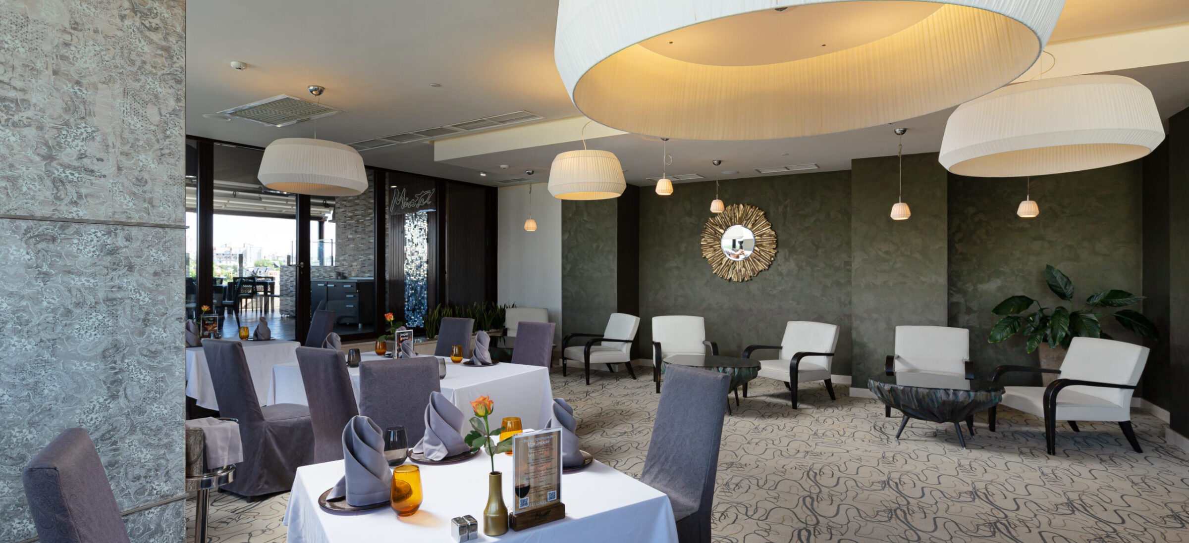 Bellini’s Piano Bar & Grill – це панорамний ресторан авторської кухні, названий на честь відомого коктейлю з перетертих персиків й ігристого вина, який, свого часу, став символом життя класу «люкс». Природно, що тільки такий ресторан міг з’явитися в нашому готелі, де у білого рояля гості можуть зустрітися для ділових перемовин або романтичних побачень.