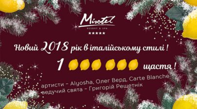 ЧАРІВНА НІЧ У MIROTEL RESORT & SPA, ЯКА ПРИНЕСЕ «ЛИМОН» ЩАСТЯ!Кожен раз, зустрічаючи першу, неперевершену ніч нового року, ми очікуємо виповнення своїх бажань та сподіваємося на щастя впродовж усього року! 2018 рік – особливий! Палітра лимонно-винних кольорів у Mirotel Resort […]