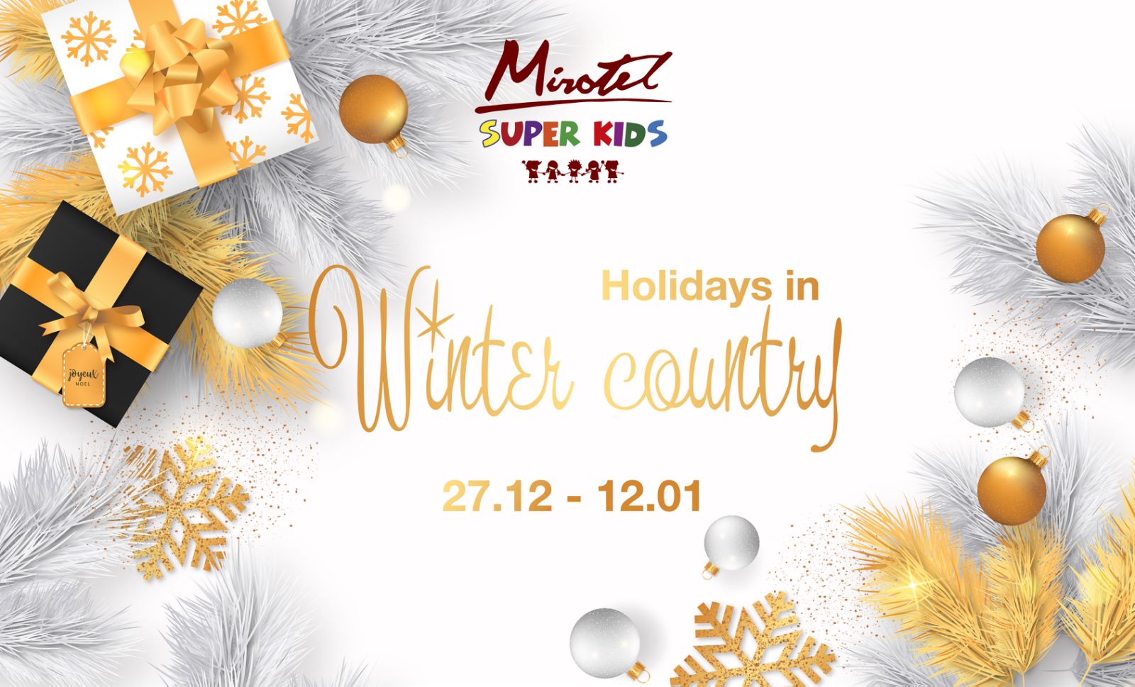 Запрошуємо до зимової країни СУПЕР КІДС, яка подарує кожній дитині оригінальні та незабутні канікули: з майстер класами по виготовленню новорічно- різдвяних сувенірів, захопливе кріо-шоу з формулою снігу, творчі години з художником, святкування Дня Народження Супер Кідс в стилі « Новорічні стиляги», вечірні посиденьки з Мері Поппінс біля магічної снігової кулі, та надзвичайно казкову вечірку 31 грудня Новорічне задзеркалля
